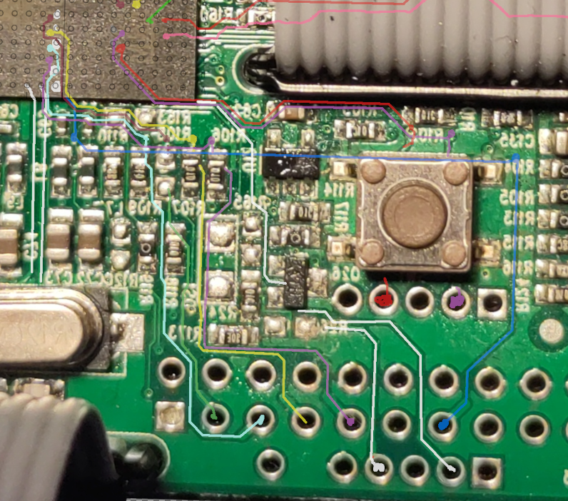 Fortunately I did not need to desolder the button to verify where those tracks were going, because a bit of probing gave me a beautiful TX signal on board boot on the connector pin.