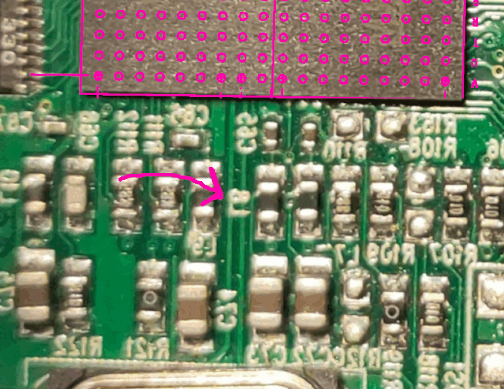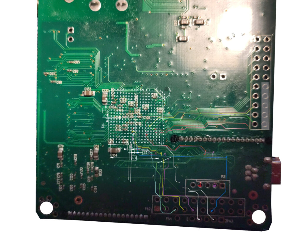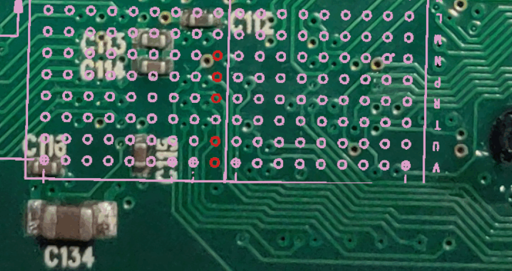 We can see here that the tracks stop between V10 and V11, and V11 and V12, so it is easy to imagine they just continue a little bit to the left under the BGA. It seems to be matching!