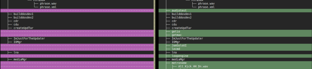First, I analyzed the files and logs with diff, vimdiff, hexdump and tree. Interestingly, some files are missing.