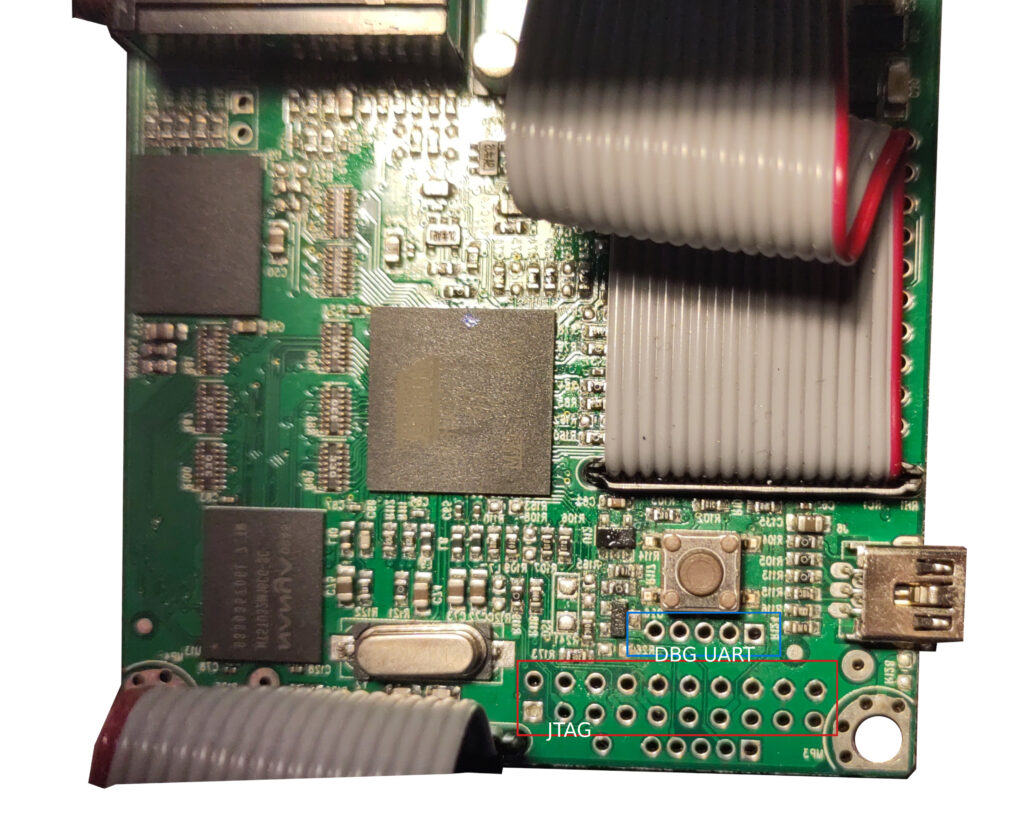 Since the board has lots of connectors, I decided to start the detective work from the ports I wanted to find. First, the JTAG port.